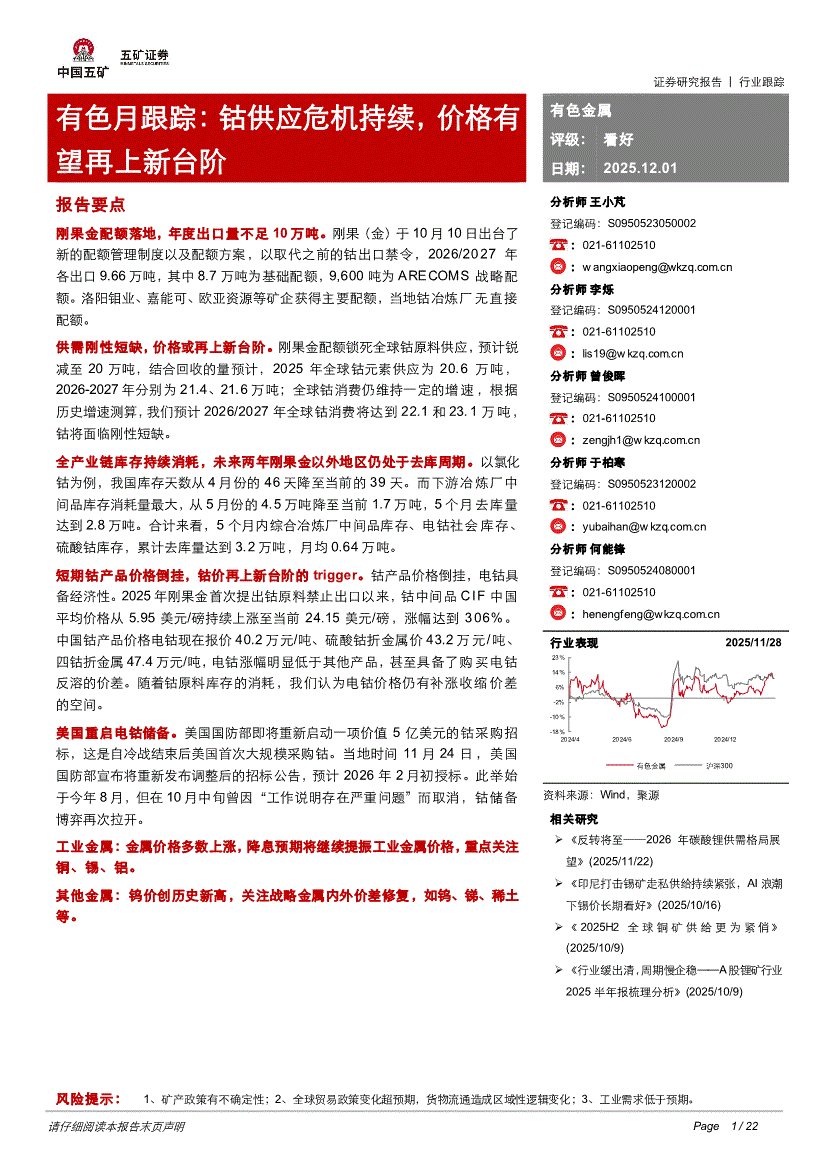 有色金属行业:五矿证券-有色行业月跟踪:钴供应危机持续,价格有望再上新台阶-251201