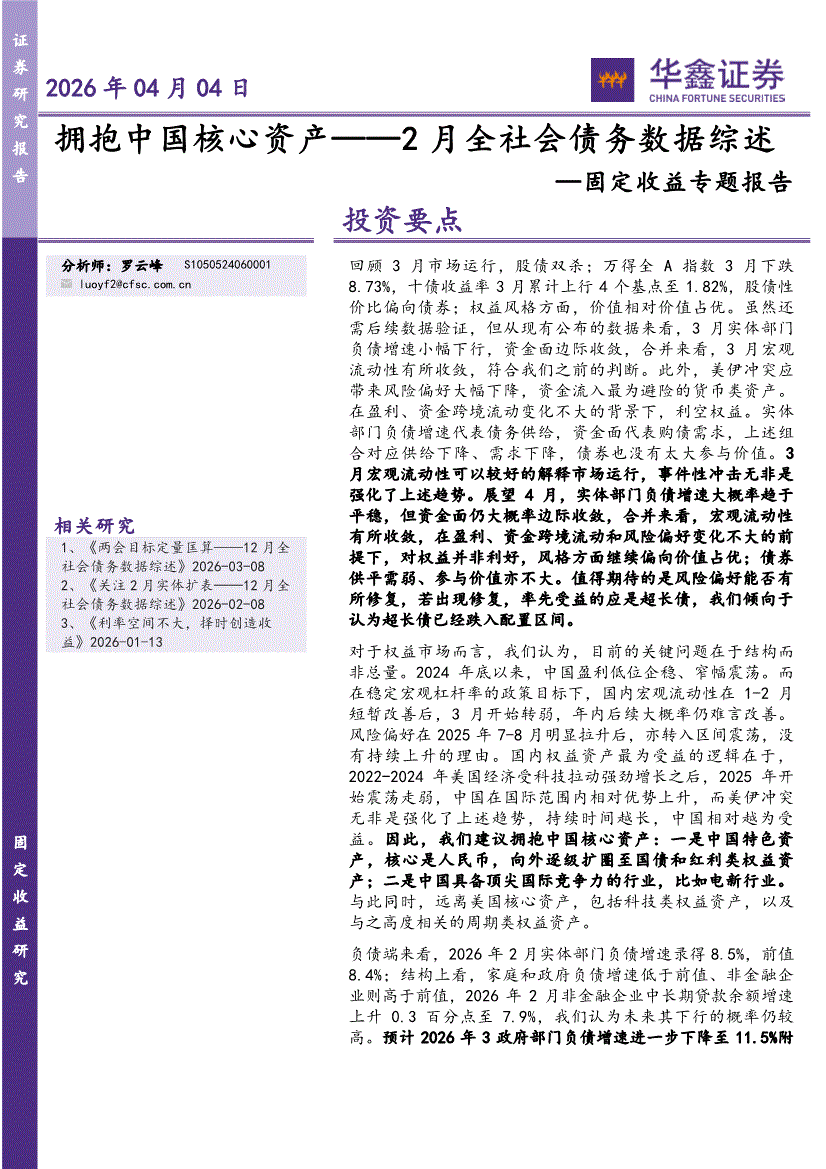 华鑫证券-固定收益专题报告:拥抱中国核心资产——2月全社会债务数据综述-260404