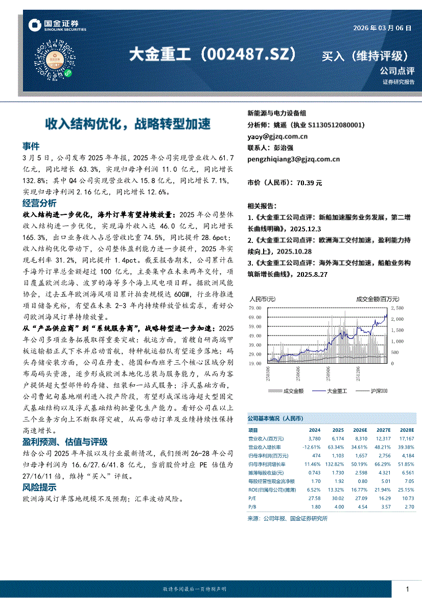 大金重工:国金证券-大金重工-002487-收入结构优化,战略转型加速-260306