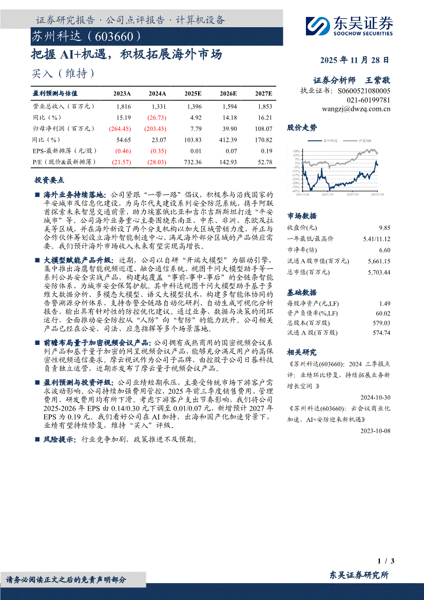 苏州科达:东吴证券-苏州科达-603660-把握AI+机遇,积极拓展海外市场-251128