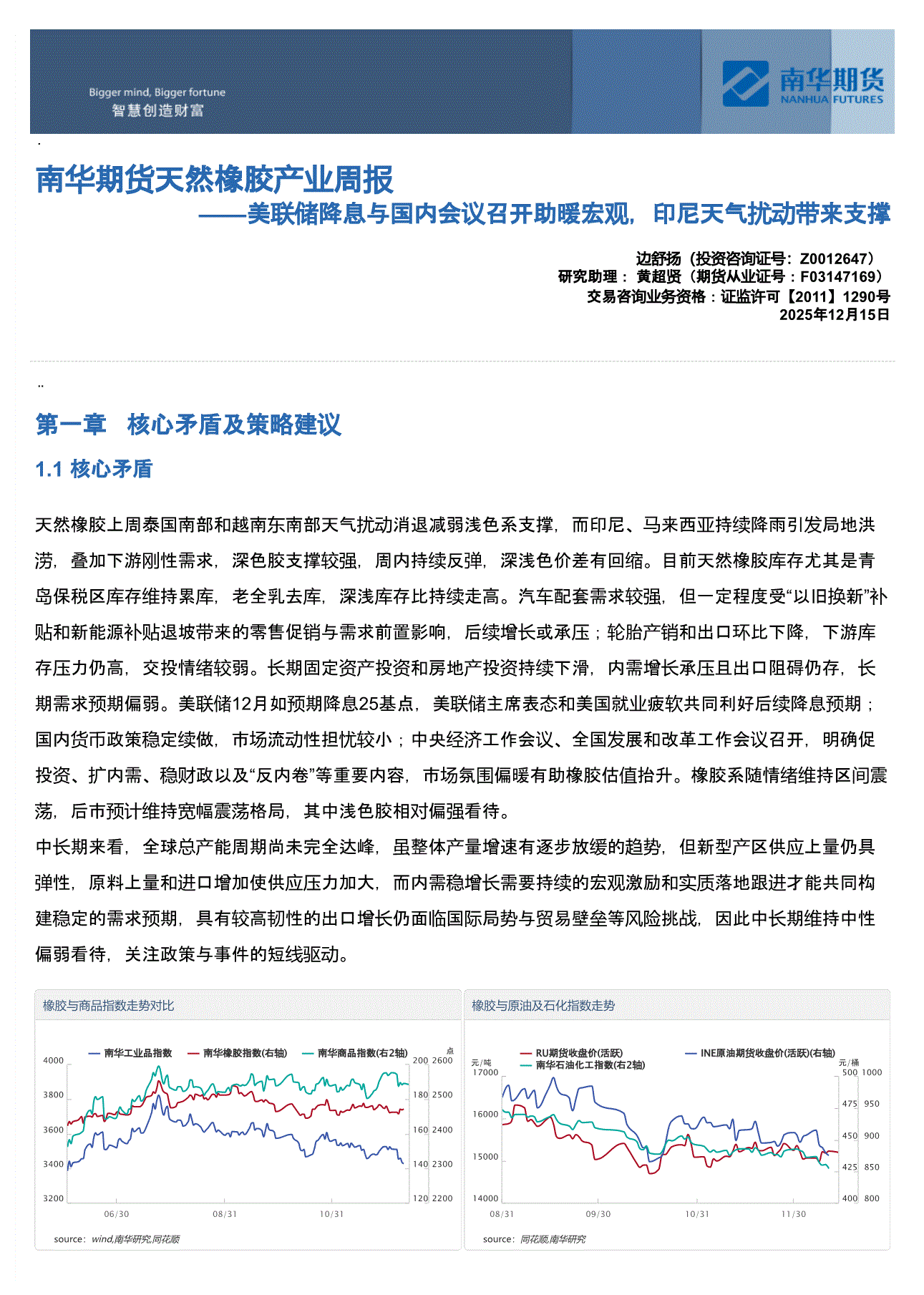 南华期货-天然橡胶产业周报:美联储降息与国内会议召开助暖宏观,印尼天气扰动带来支撑-251215