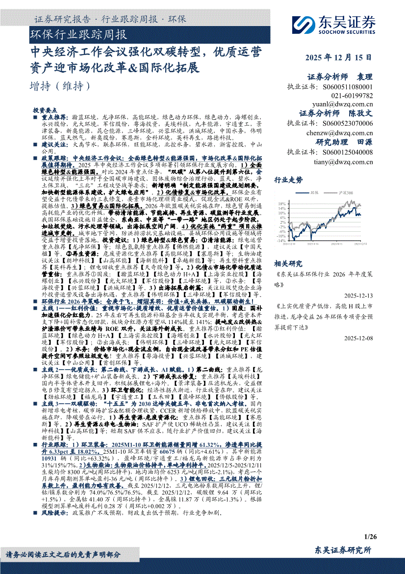 环保行业:东吴证券-环保行业跟踪周报:中央经济工作会议强化双碳转型,优质运营资产迎市场化改革&国际化拓展-251215