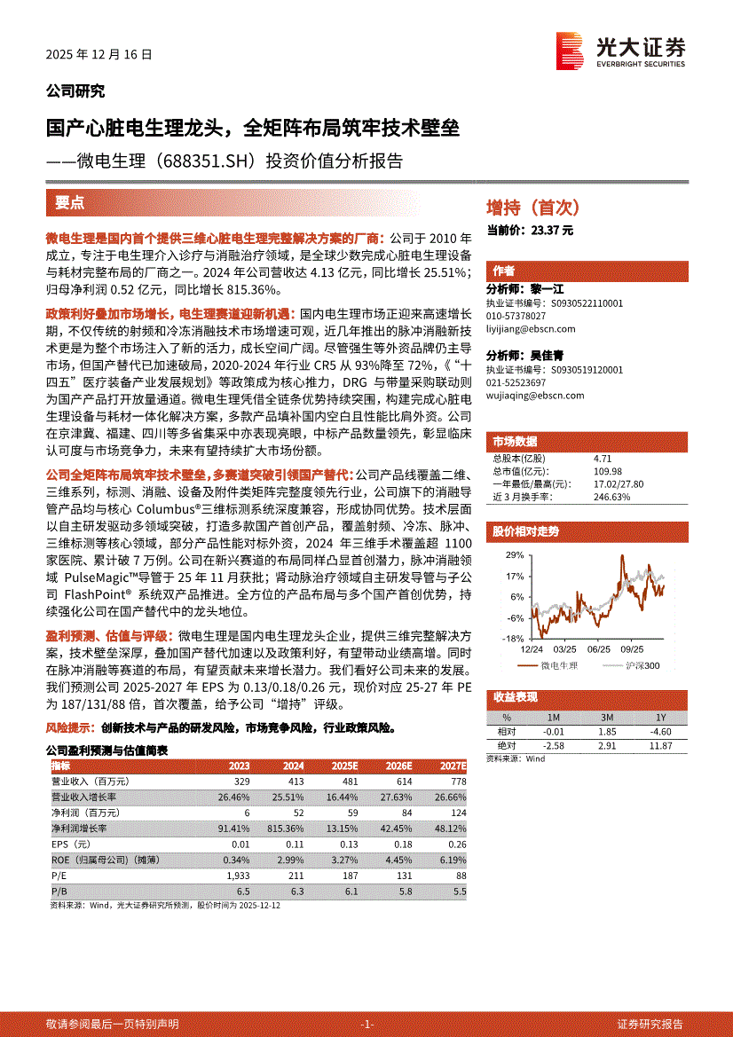 微电生理:光大证券-微电生理-688351-投资价值分析报告:国产心脏电生理龙头,全矩阵布局筑牢技术壁垒-251216