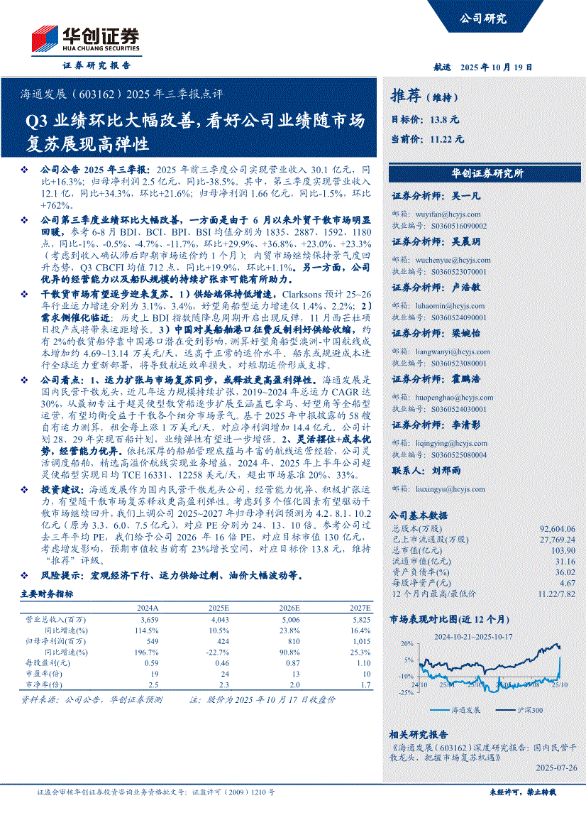 海通发展:华创证券-海通发展-603162-2025年三季报点评:Q3业绩环比大幅改善,看好公司业绩随市场复苏展现高弹性-251019