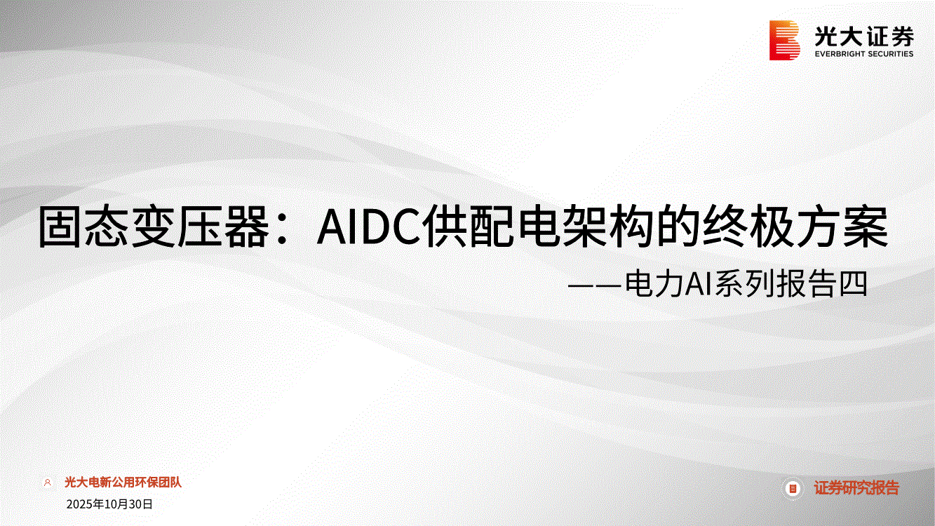 电力行业:光大证券-电力行业AI系列报告四:固态变压器,AIDC供配电架构的终极方案-251030
