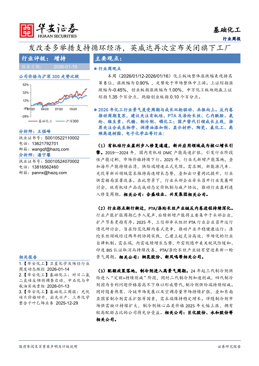 基础化工行业:华安证券-基础化工行业周报:发改委多举措支持循环经济,英威达再次宣布关闭旗下工厂-260119