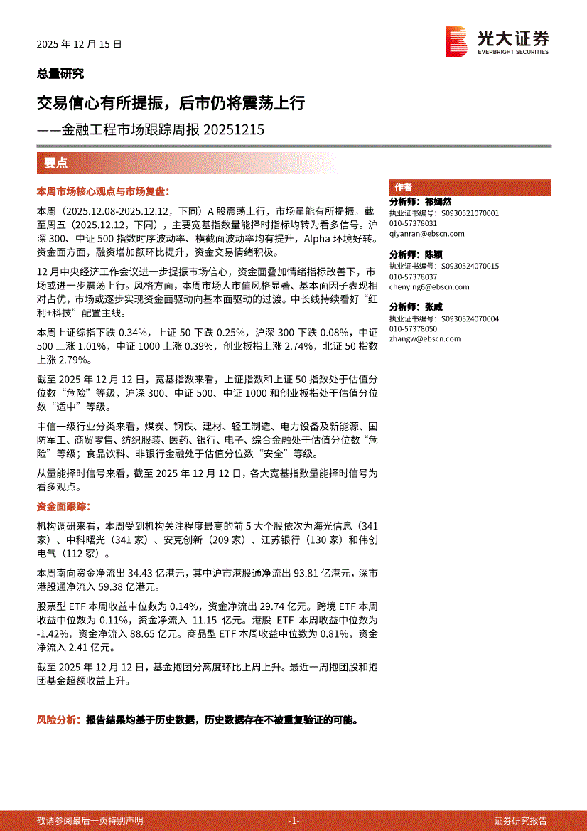 光大证券-金融工程市场跟踪周报:交易信心有所提振,后市仍将震荡上行-251215