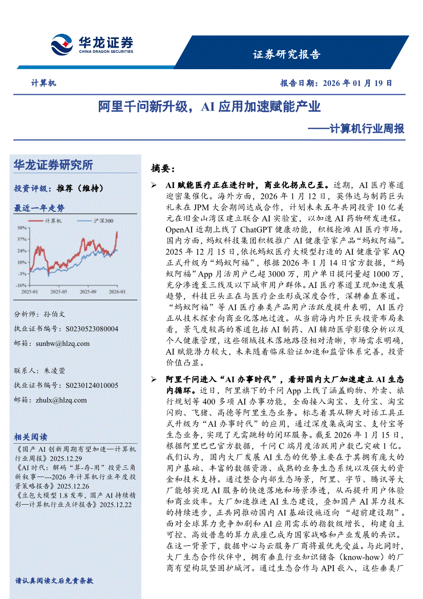 计算机行业:华龙证券-计算机行业周报:阿里千问新升级,AI应用加速赋能产业-260119