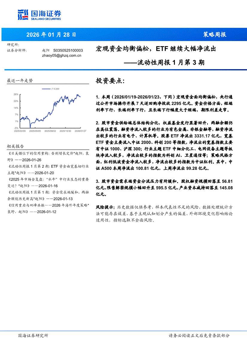 国海证券-流动性周报1月第3期:宏观资金均衡偏松,ETF继续大幅净流出-260128