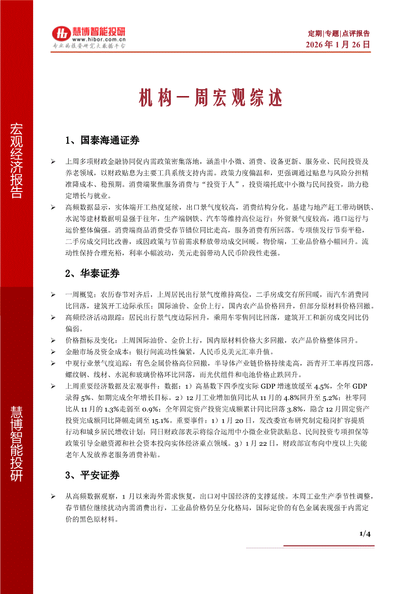 慧博智能投研-机构一周宏观综述-260126