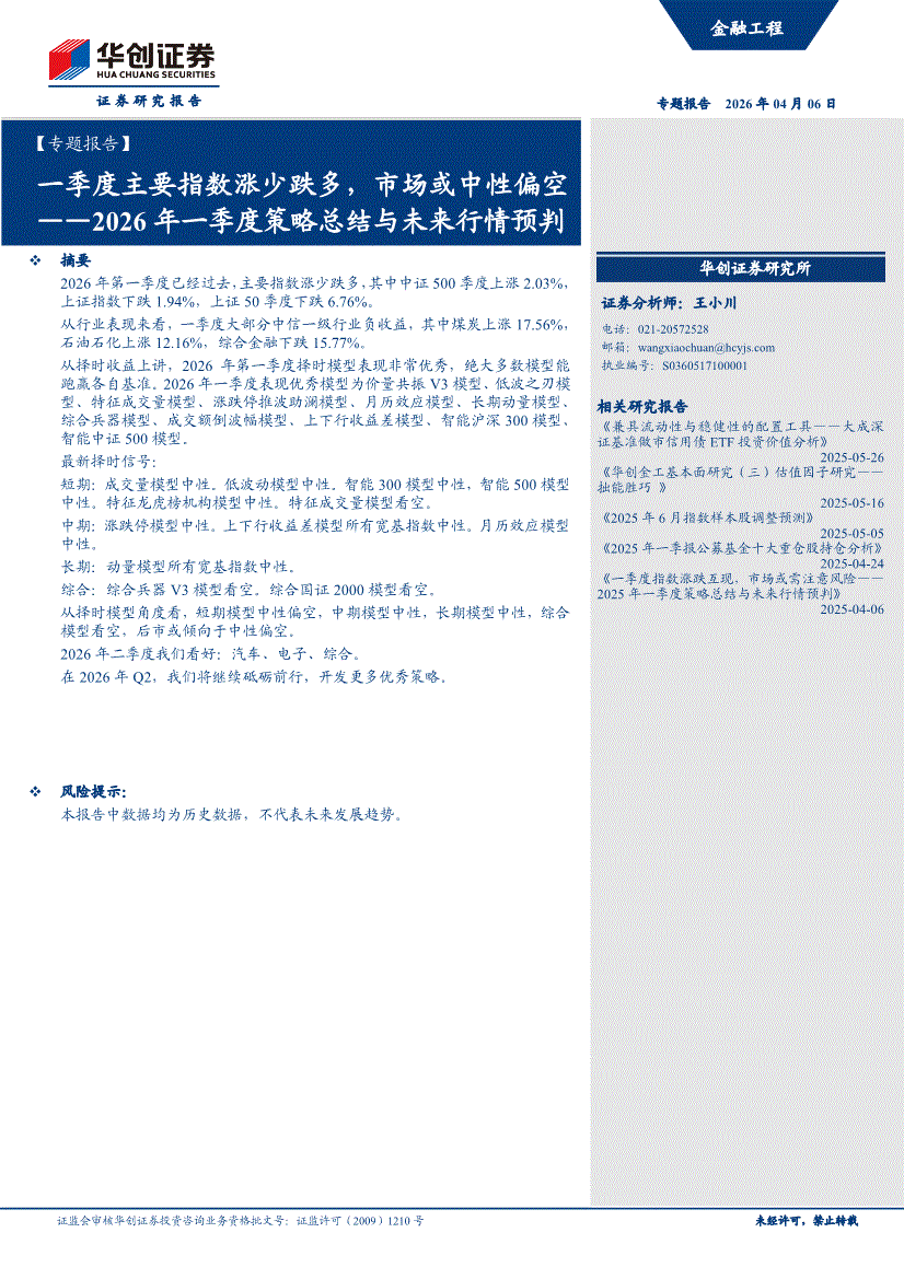 华创证券-2026年一季度策略总结与未来行情预判:一季度主要指数涨少跌多,市场或中性偏空-260406