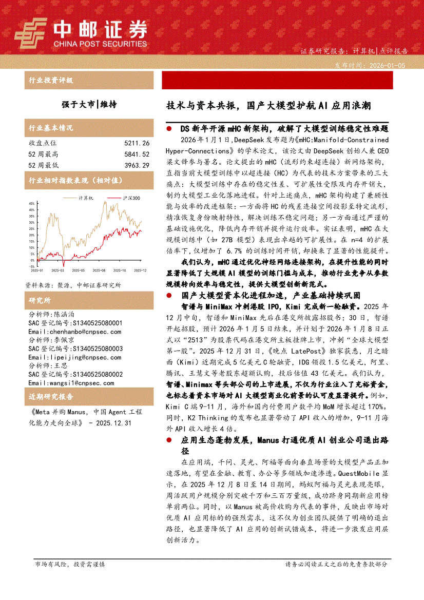 计算机行业:中邮证券-计算机行业点评报告:技术与资本共振,国产大模型护航AI应用浪潮-260105