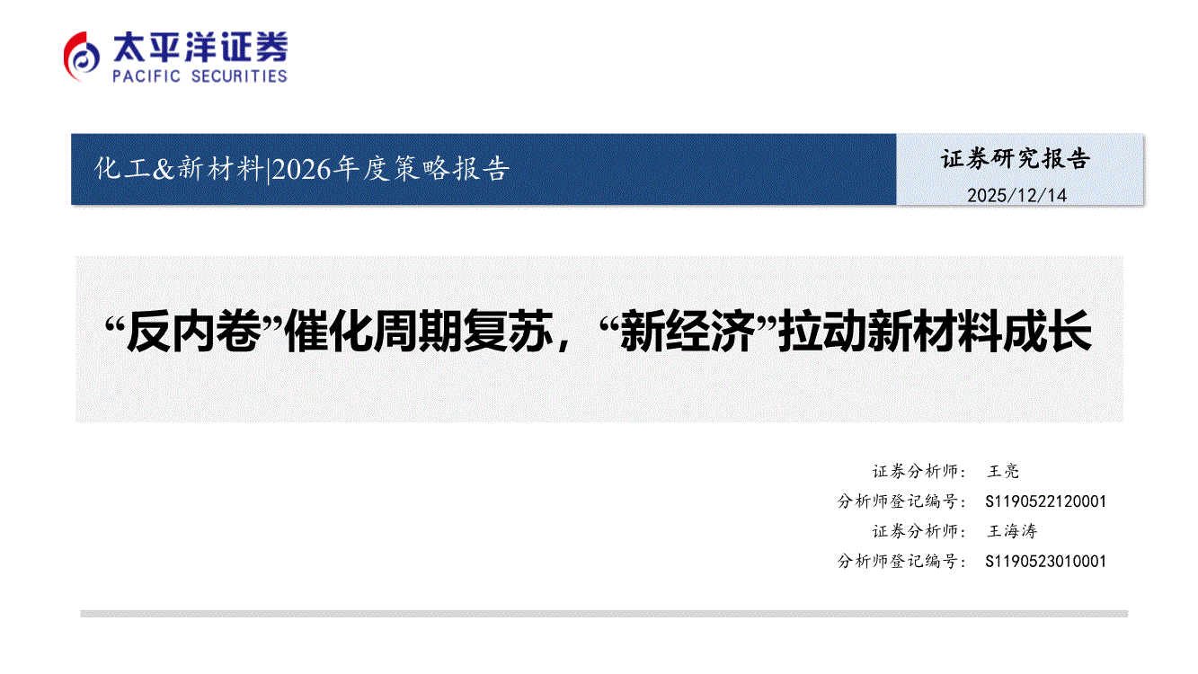 化工&新材料行业:太平洋证券-化工&新材料行业|2026年度策略报告:“反内卷”催化周期复苏,“新经济”拉动新材料成长-251214