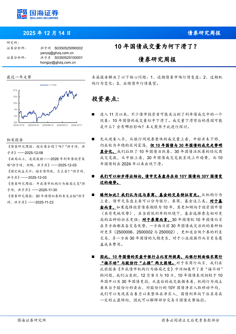 国海证券-债券研究周报:10年国债成交量为何下滑了?-251214