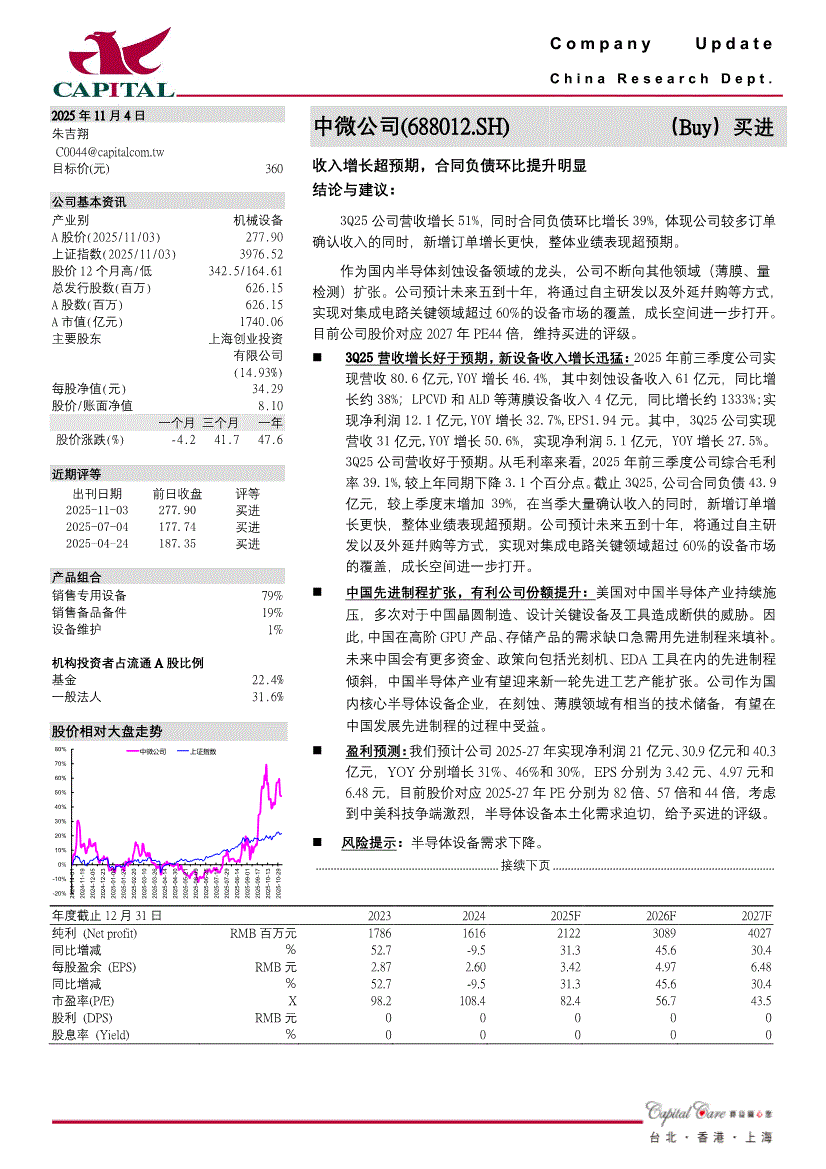 中微公司:群益证券-中微公司-688012-收入增长超预期,合同负债环比提升明显-251104