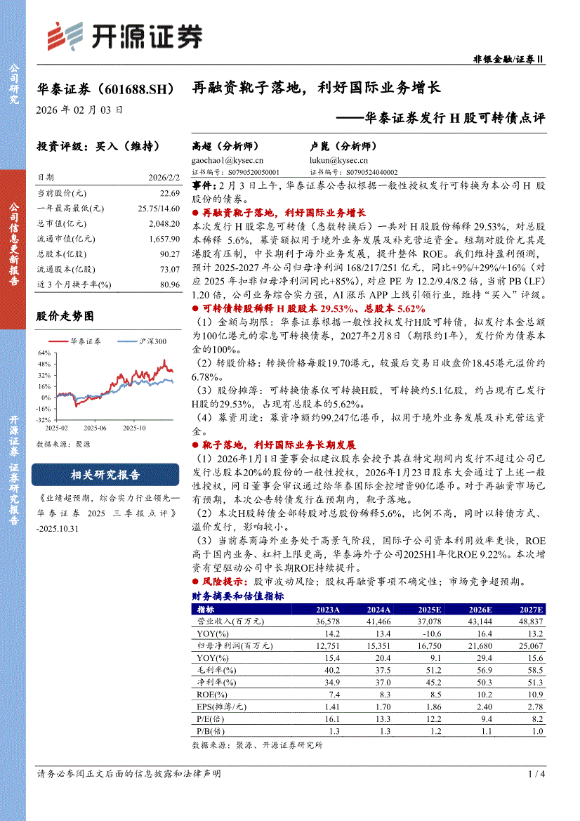 华泰证券:开源证券-华泰证券-601688-华泰证券发行H股可转债点评:再融资靴子落地,利好国际业务增长-260203