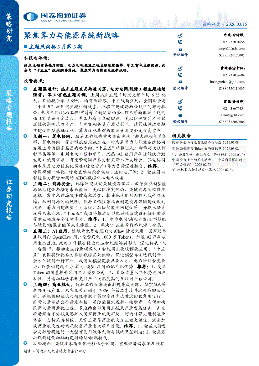 国泰海通证券-主题风向标3月第3期:聚焦算力与能源系统新战略-260315