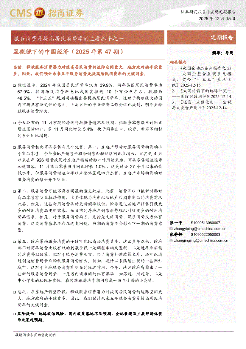 招商证券-显微镜下的中国经济(2025年第47期):服务消费是提高居民消费率的主要抓手之一-251215