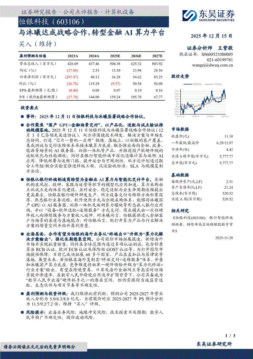 恒银科技:东吴证券-恒银科技-603106-与沐曦达成战略合作,转型金融AI算力平台-251215