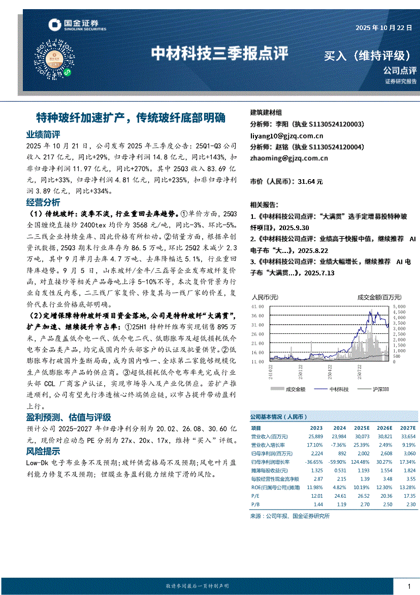 中材科技:国金证券-中材科技-002080-三季报点评:特种玻纤加速扩产,传统玻纤底部明确-251022
