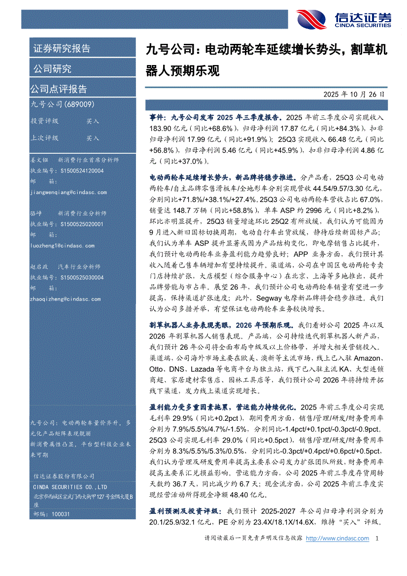 九号公司:信达证券-九号公司-689009-电动两轮车延续增长势头,割草机器人预期乐观-251026