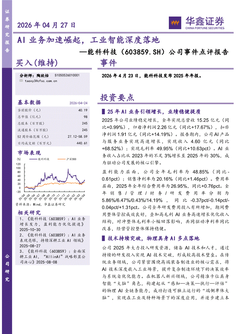 能科科技:华鑫证券-能科科技-603859-公司事件点评报告:AI业务加速崛起,工业智能深度落地-260427