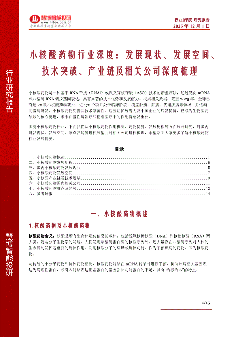 小核酸药物行业:慧博智能投研-小核酸药物行业深度:发展现状、发展空间、技术突破、产业链及相关公司深度梳理-251201