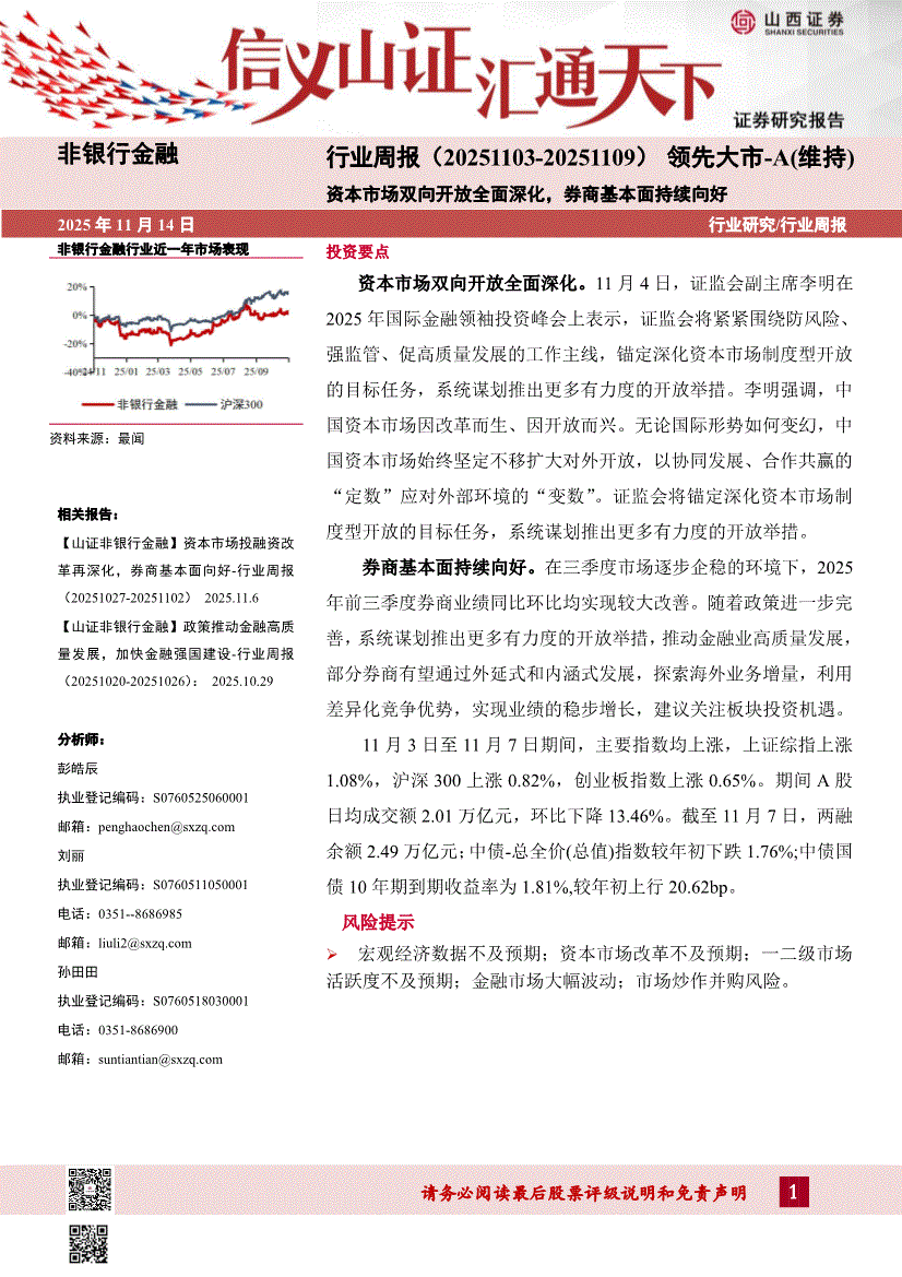 非银行金融行业:山西证券-非银行金融行业周报:资本市场双向开放全面深化,券商基本面持续向好-251114