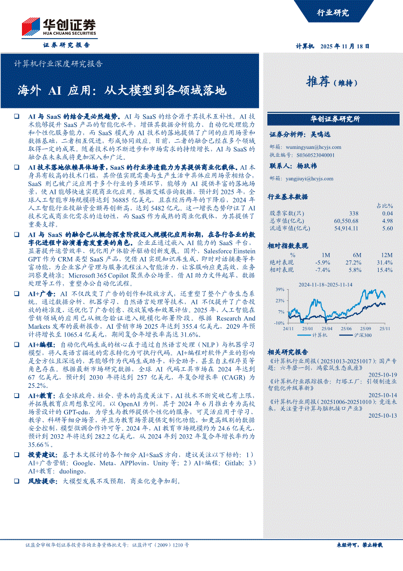 计算机行业:华创证券-计算机行业深度研究报告:海外AI应用,从大模型到各领域落地-251118