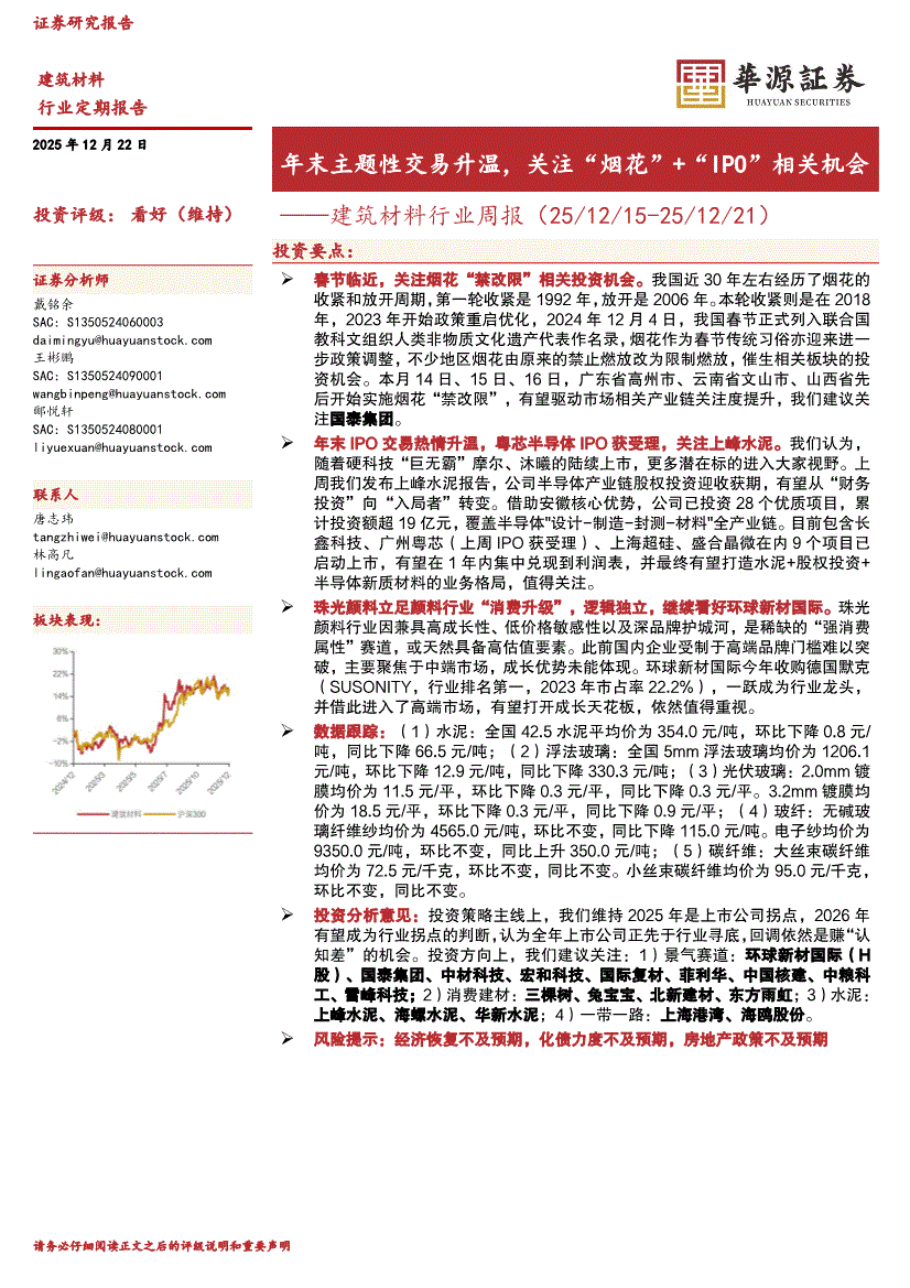 建筑材料行业:华源证券-建筑材料行业周报:年末主题性交易升温,关注“烟花”+“IPO”相关机会-251222