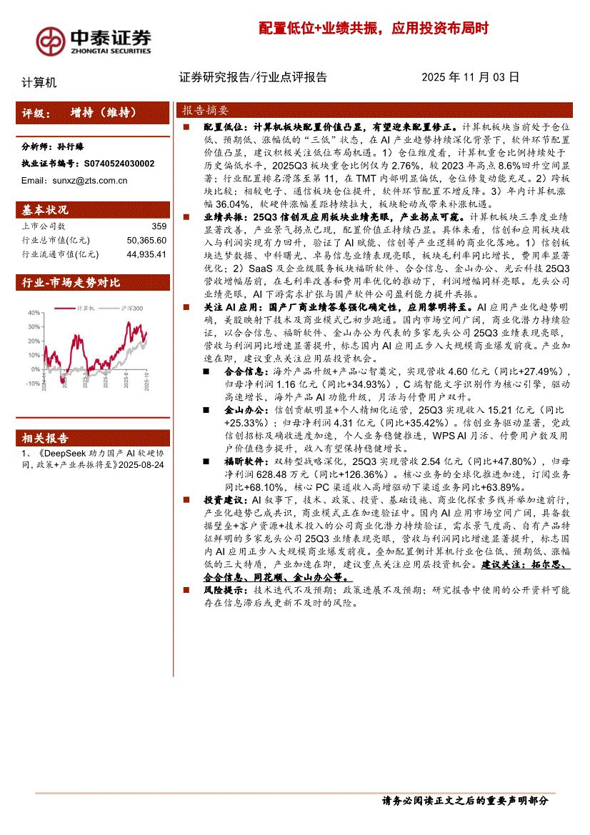 计算机行业:中泰证券-计算机行业:配置低位+业绩共振,应用投资布局时-251103