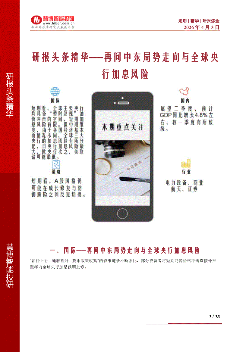 慧博智能投研-慧博研报炼金之研报头条精华:再问中东局势走向与全球央行加息风险-260403