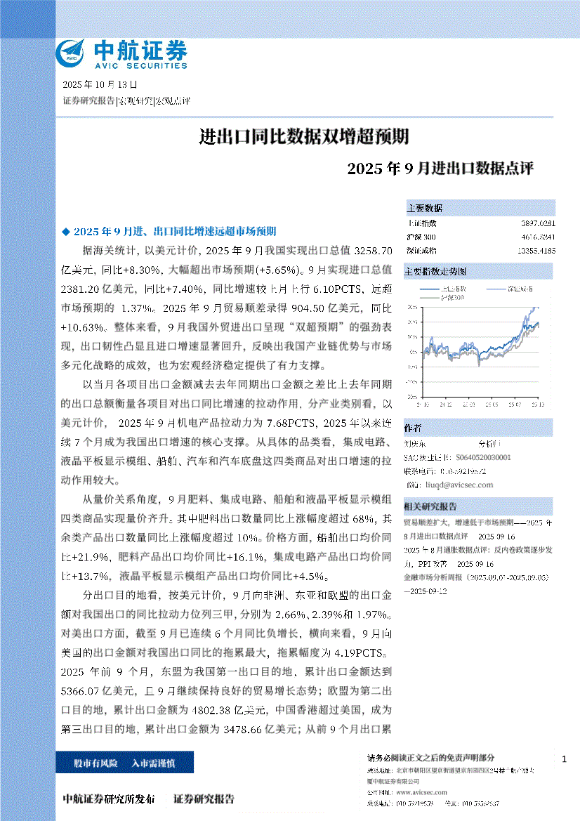 中航证券-2025年9月进出口数据点评:进出口同比数据双增超预期-251013