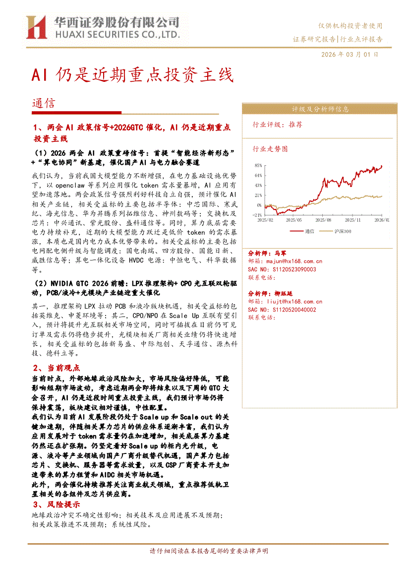 通信行业:华西证券-通信行业:AI仍是近期重点投资主线-260301