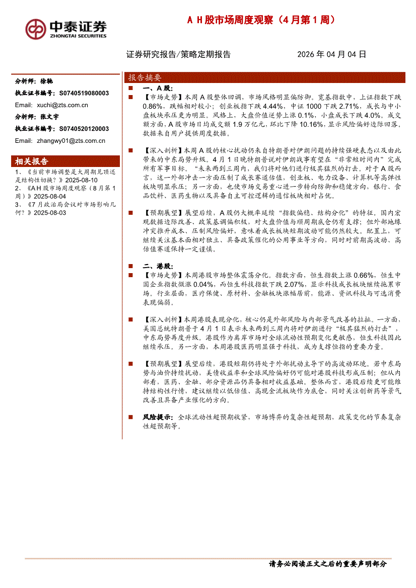 中泰证券-AH股市场周度观察(4月第1周)-260404