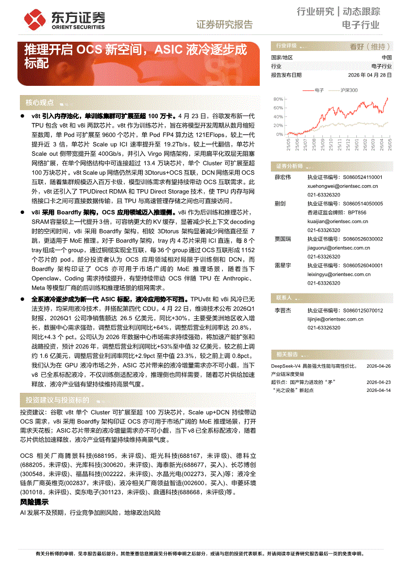电子行业:东方证券-电子行业动态跟踪:推理开启OCS新空间,ASIC液冷逐步成标配-260428