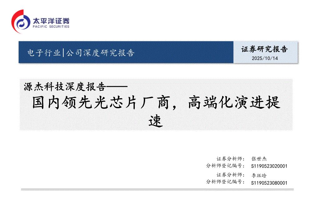源杰科技:太平洋证券-源杰科技-688498-深度报告:国内领先光芯片厂商,高端化演进提速-251014
