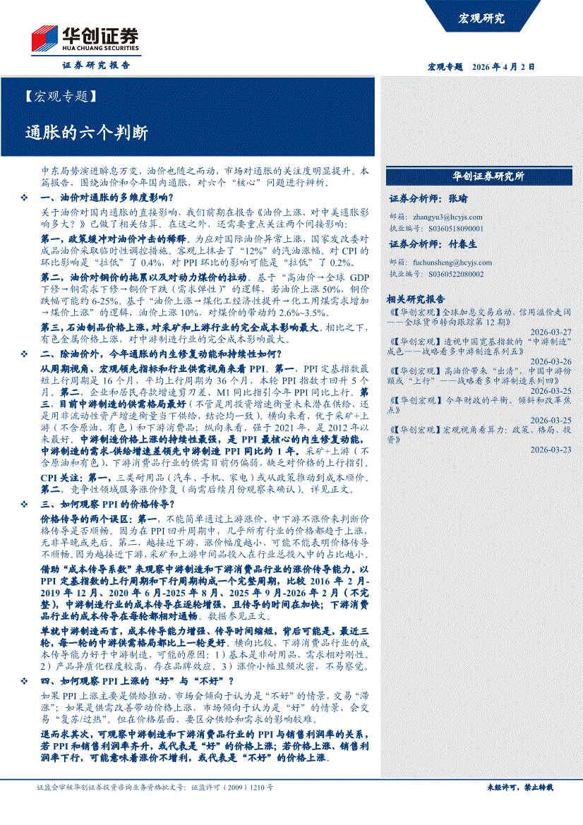 华创证券-【宏观专题】通胀的六个判断-260402