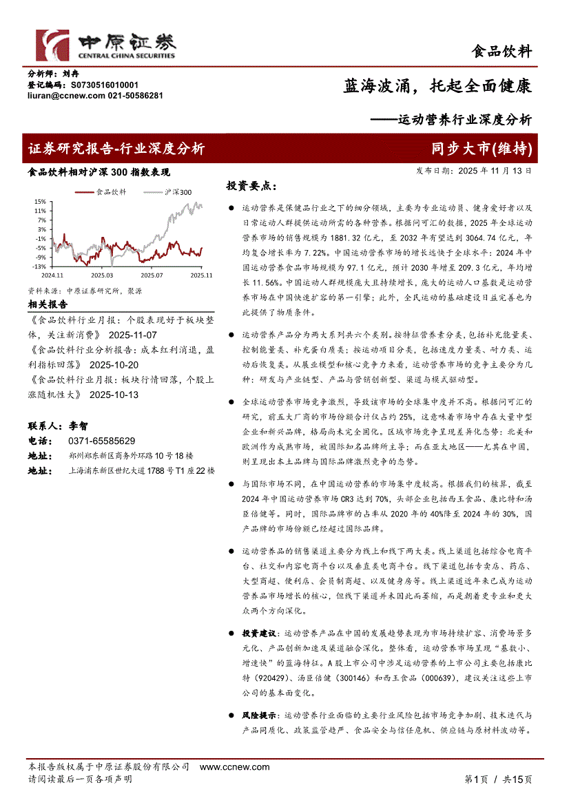 运动营养行业:中原证券-运动营养行业深度分析:蓝海波涌,托起全面健康-251113