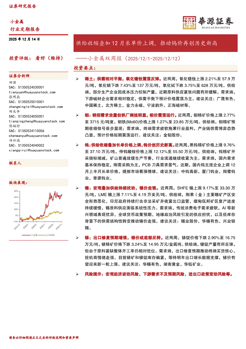 小金属行业:华源证券-小金属行业双周报:供给收缩叠加12月长单价上调,推动钨价再创历史新高-251214