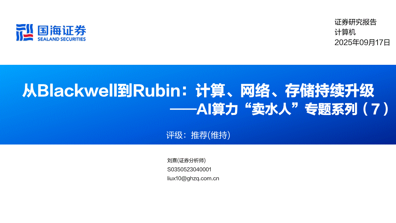 计算机行业:国海证券-计算机行业AI算力“卖水人”专题系列(7):从Blackwell到Rubin,计算、网络、存储持续升级-250917