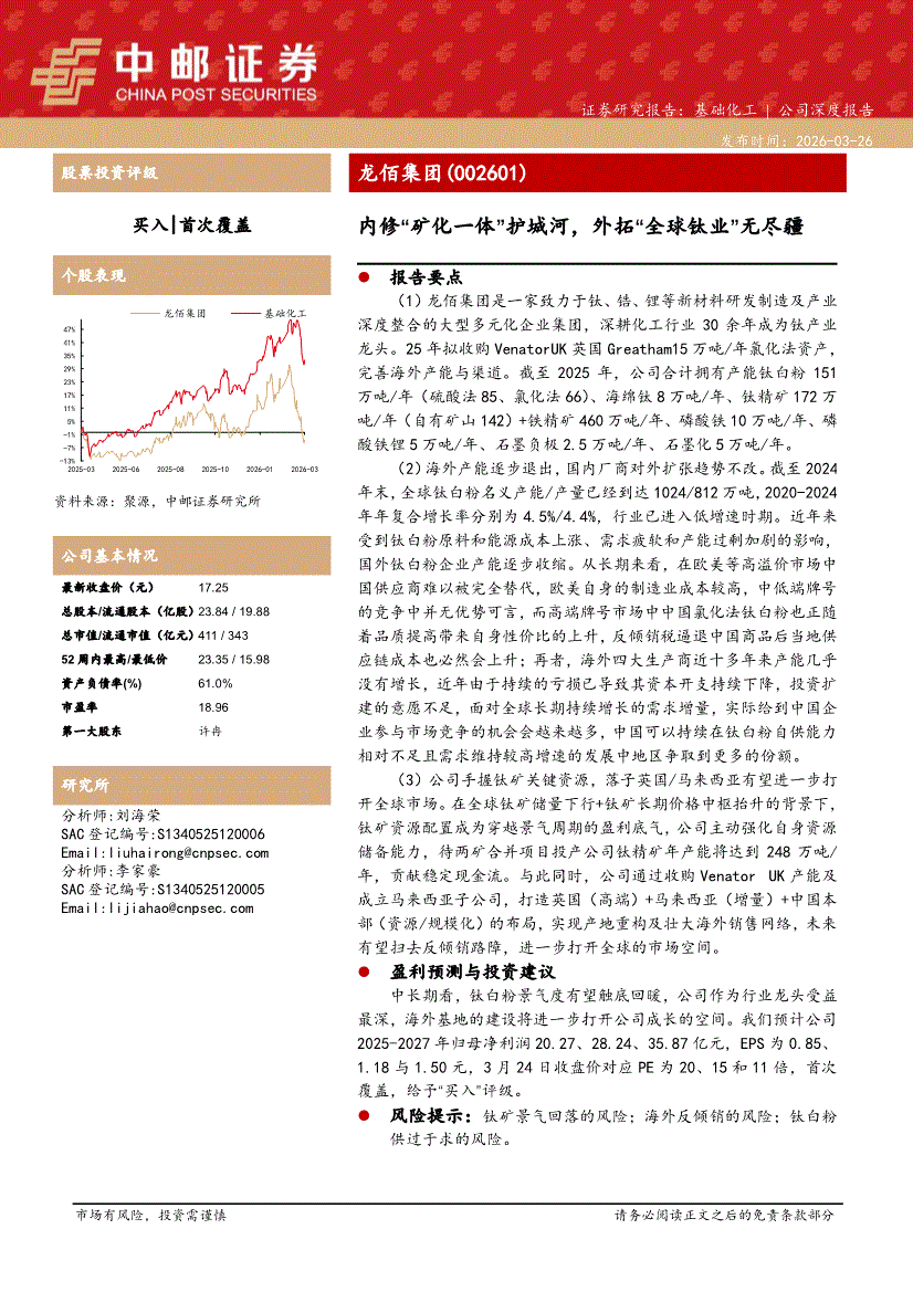 龙佰集团:中邮证券-龙佰集团-002601-内修“矿化一体”护城河,外拓“全球钛业”无尽疆-260326