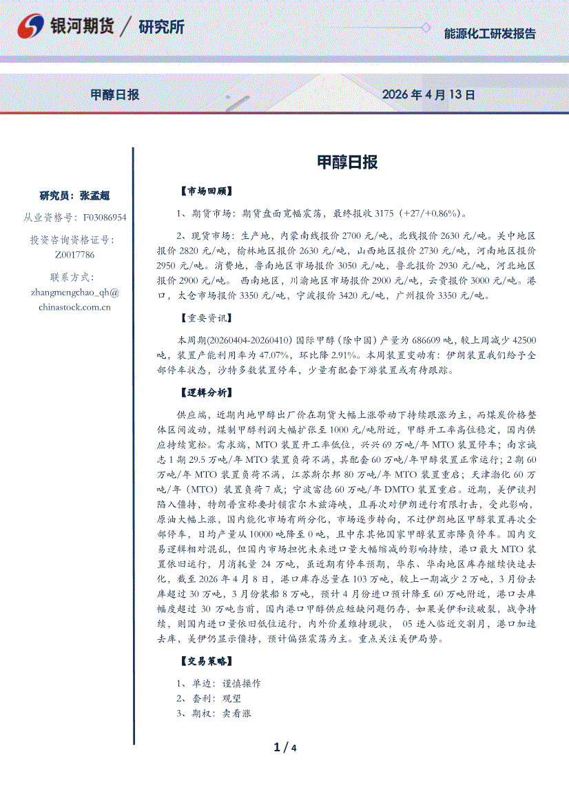 银河期货-甲醇日报-260413