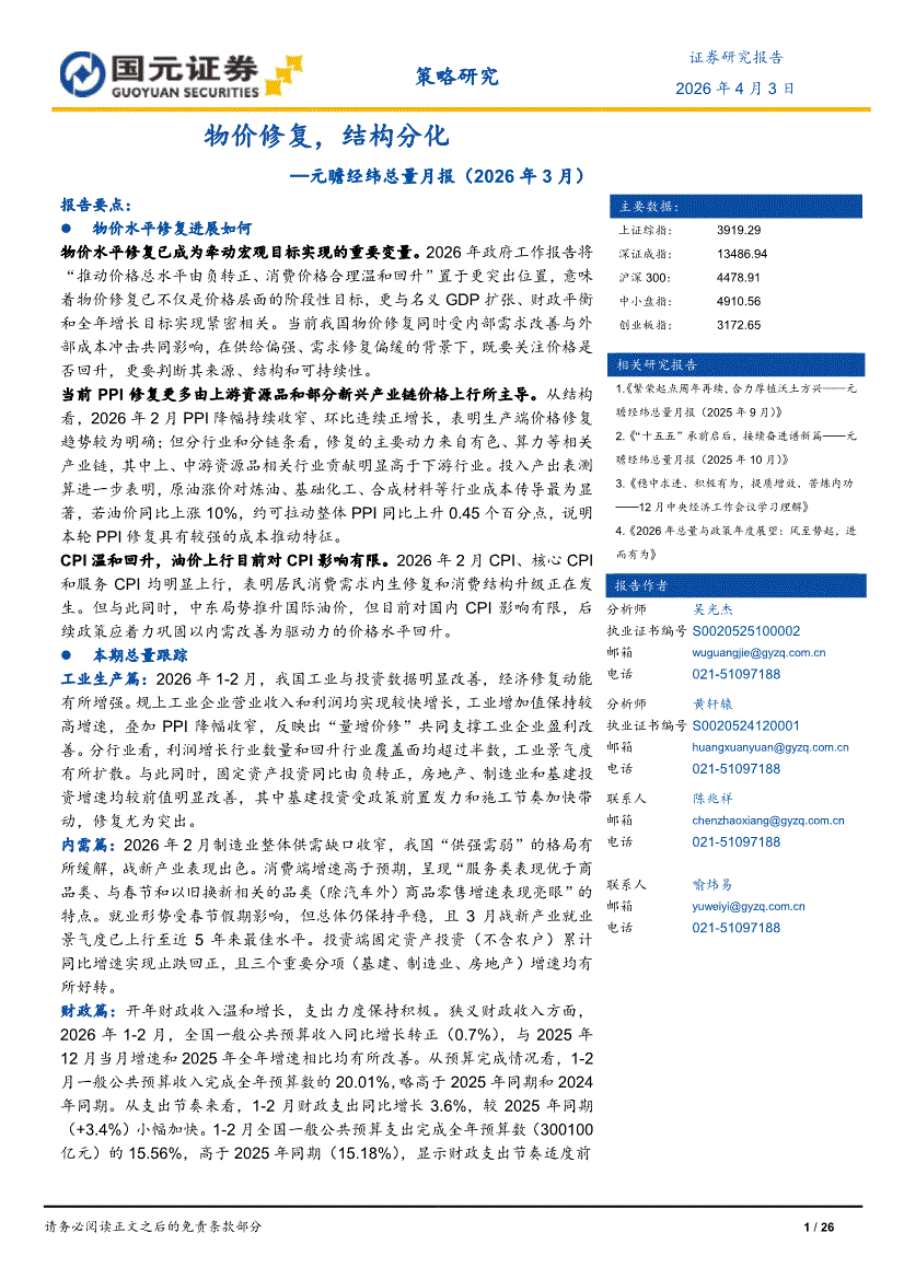 国元证券-元瞻经纬总量月报(2026年3月):物价修复,结构分化-260403
