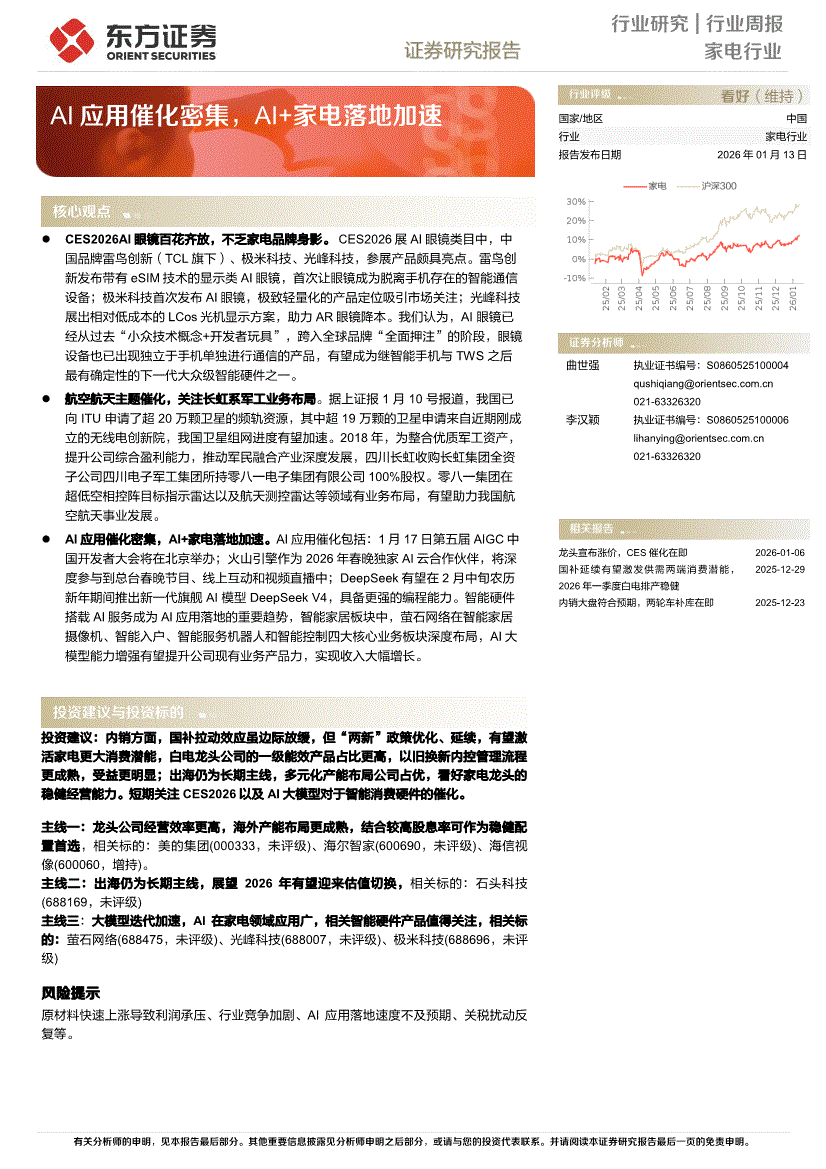 家电行业:东方证券-家电行业周报:AI应用催化密集,AI+家电落地加速-260113