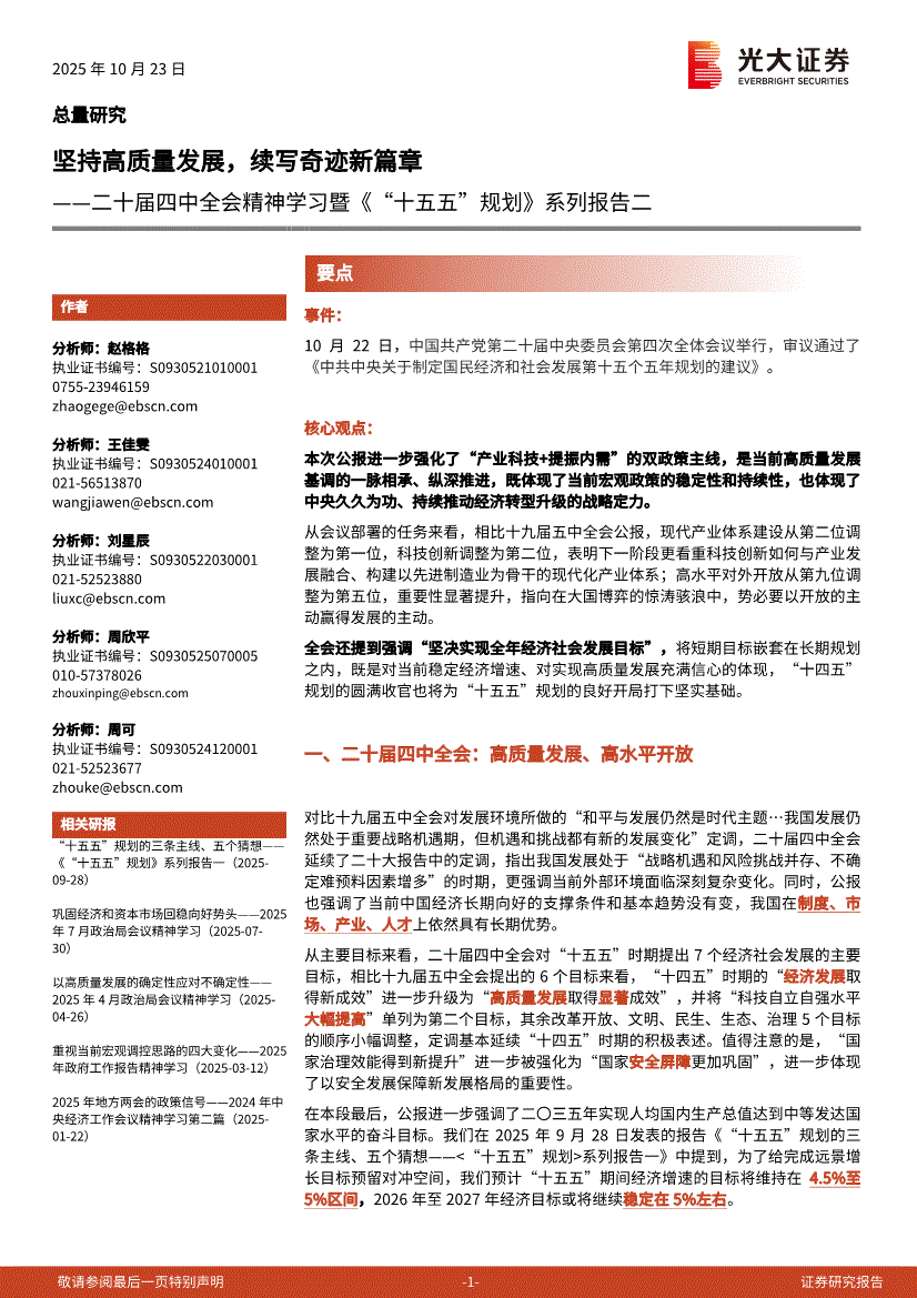 光大证券-二十届四中全会精神学习暨《“十五五”规划》系列报告二:坚持高质量发展,续写奇迹新篇章-251023