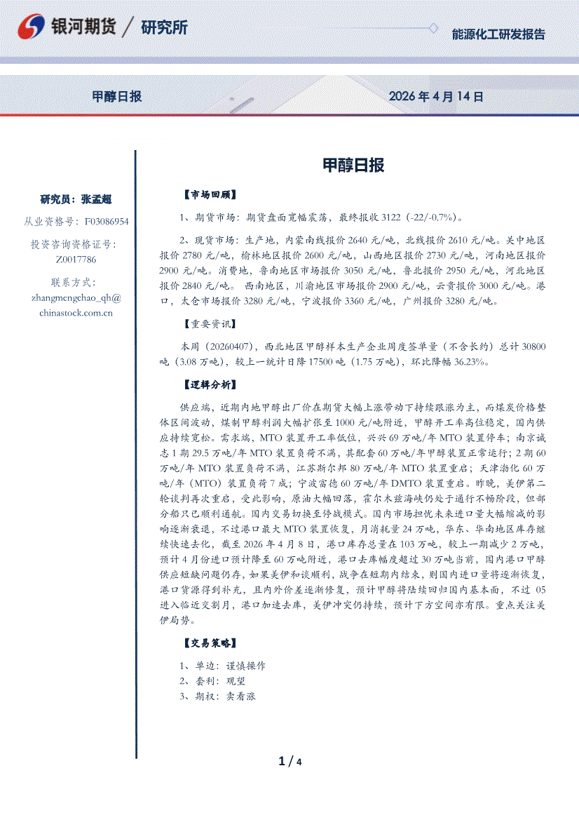 银河期货-中东冲突缓和,甲醇震荡为主-260417