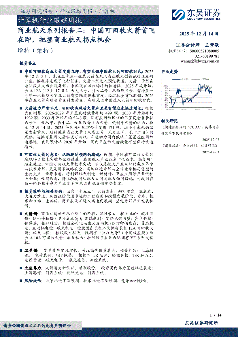 计算机行业:东吴证券-计算机行业跟踪周报:商业航天系列报告二,中国可回收火箭首飞在即,把握商业航天拐点机会-251214