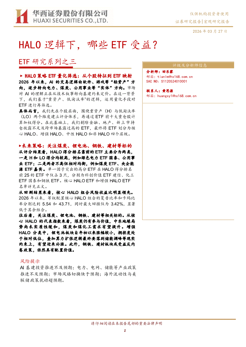 华西证券-ETF研究系列之三:HALO逻辑下,哪些ETF受益?-260327