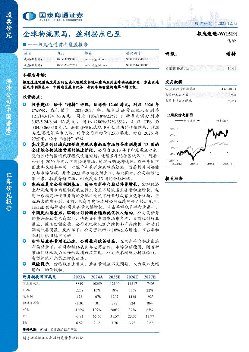 极兔速递~W:国泰海通证券-极兔速递~W-1519.HK-首次覆盖报告:全球物流黑马,盈利拐点已至-251215